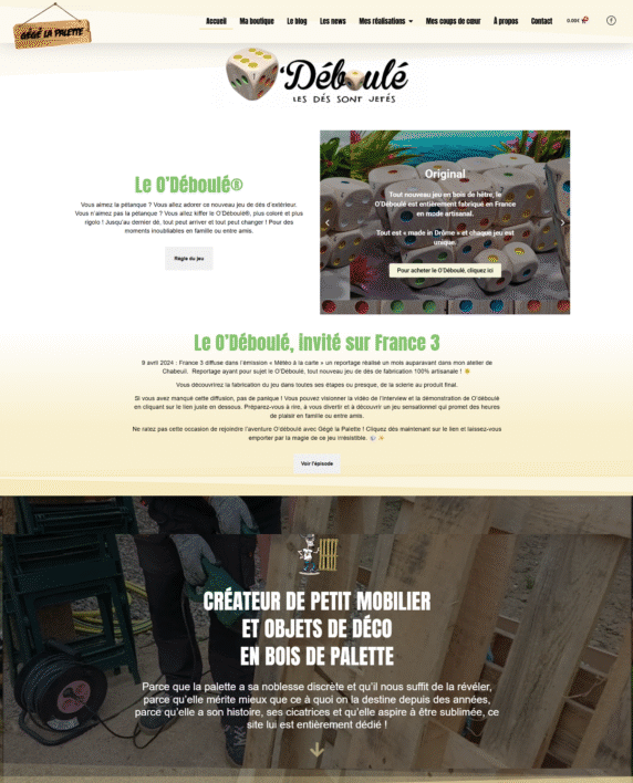Découvrez le site e-commerce de Gégé la Palette, une vitrine numérique aussi élégante que les plumes d’une chouette en plein vol ! Avec chaque meuble artisanal présenté avec soin, laissez-vous séduire par l’art de la menuiserie.